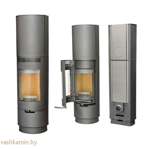 Корпус выполнен в виде полукруглой формы. Прочное огнеупорное стекло придает полукруглой дверце печи уникальный вид. Благодаря стеклу, слегка вытянутому вверх, становится намного больше объем пламени, достигается наибольший угол обзора. Колосниковая решетка изготовлена из чугуна. Отделка топочной камеры выполнена из вермикулита.