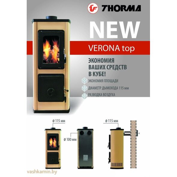 Печь-камин Thorma Verona TOP – одна из самых популярных моделей из ассортимента словацкого производителя «Thorma». Закладка дров осуществляется вертикально, благодаря компактным размерам не возникнет сложностей с транспортировкой или монтажом.